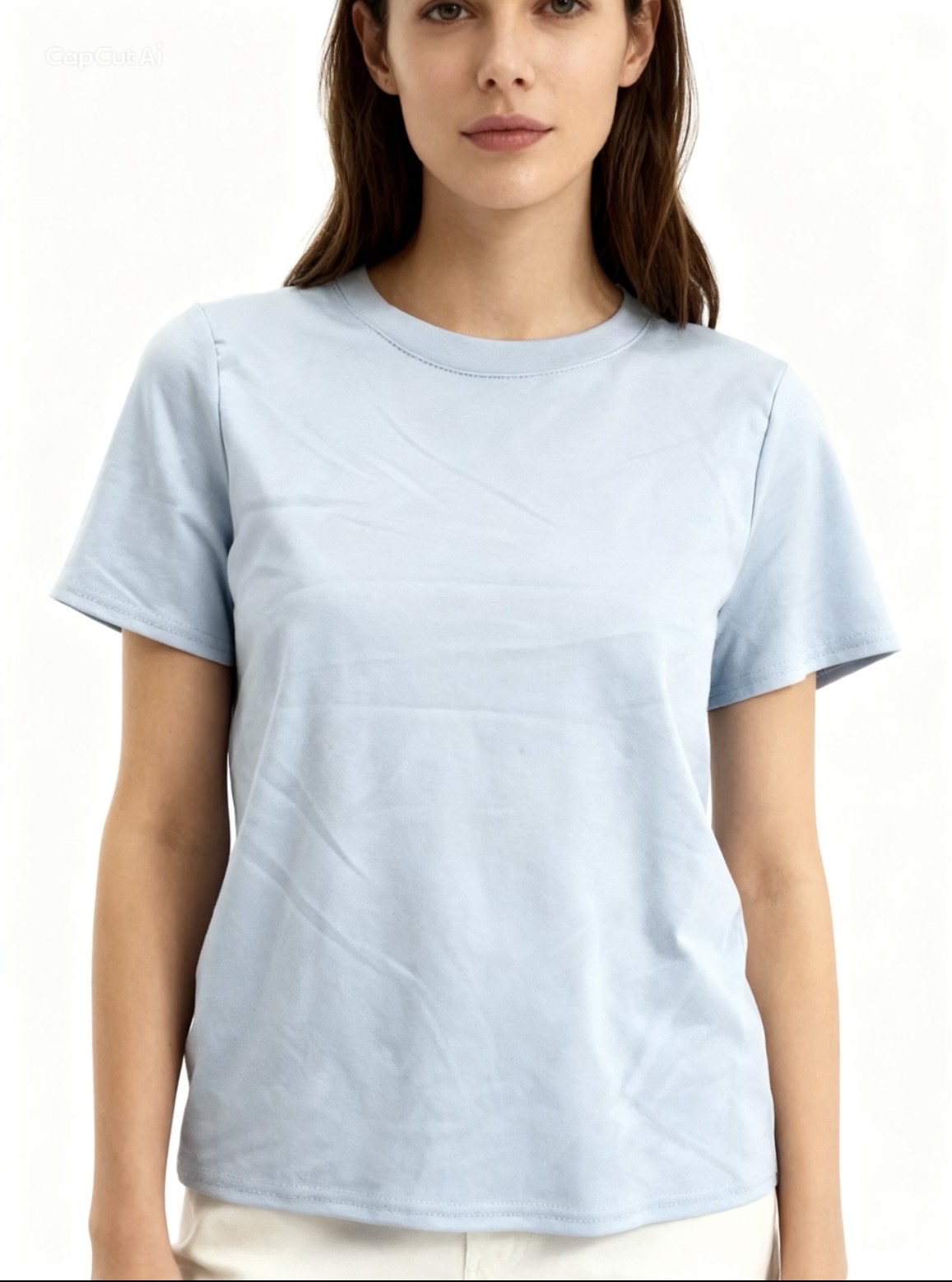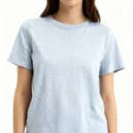 Camiseta de algodón azul cuello redondo y manga corta, una prenda básica