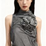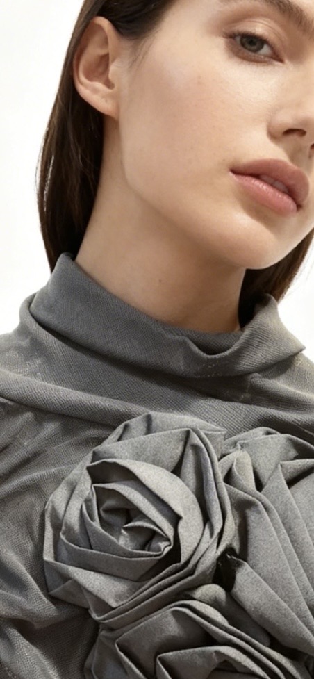Top negro transparente con flores manga sisa